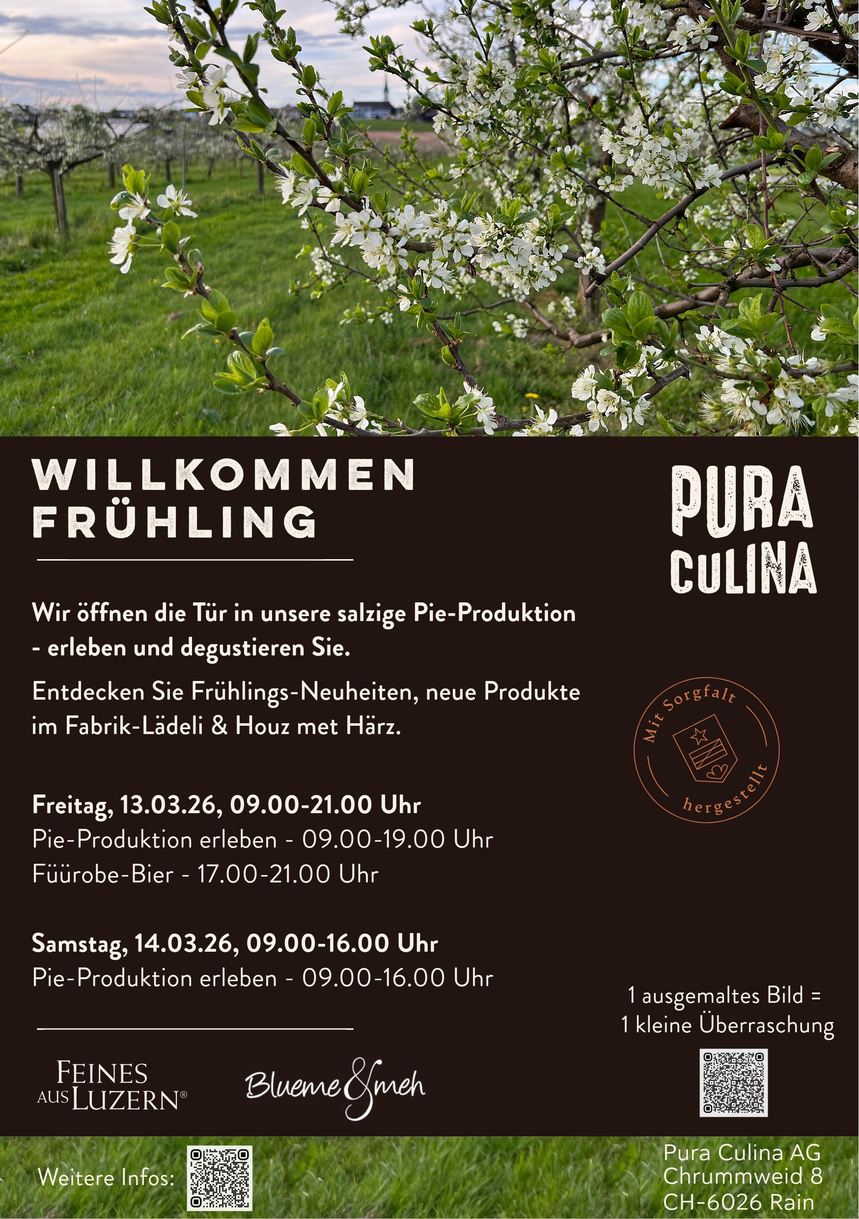 Liebe Kinder, bringt Farbe in unser Fabrik-Lädeli. Malt dazu eines der Ausmalbilder_Willkommen Frühling aus und bringt es am Frühlings-Wochenende bei Pura Culina vorbei. Als Dankeschön für eure Mühe bekommt ihr eine kleine Überraschung. Wir freuen uns auf eure Bilder.