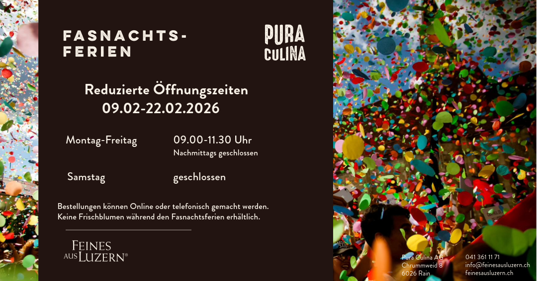Reduzierte Öffnungszeiten während den Fasnachtsferien